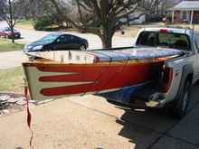 I transported the wing to the lake on top of my Uncle Johns Skiff in the back of my pickup. The wind plasters it down to the boat gunwales and it rides along at highway speeds just fine. Two people are required to hang onto it though once at the boat ramp and exposed to the wind. It's a handful. Keep it pointed edge into the wind because it wants to fly. The mast is slid into the bottom rib until it hits the stop rib. Then by keeping the top of the wing facing into the wind, and allowing it to weather-vane as it is brought to vertical, it can be stepped into the boat. Do this when no one is looking.