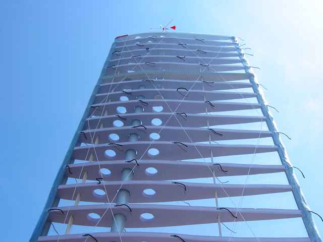 The first day I tested the wing, there was no wind and I simply drifted into the middle of the lake. The second day I tried it, there was too much wind and a gust pick up the boat and knocked it over on the launch ramp, a testament to the strength of my mast step and dispelling the "less drag then the bare mast" theory. The third day, a tornado damaged my house. Fearful of any fourth attempt, I dry sailed it a couple times on the front lawn. Contrary to the extreme flimsiness, there is absolutely no twisting in any amount of wind. And as far as strength, I have yet to accidentally puncture the skin or break any internal bits & pieces, even after the wind tried to double it in half a couple times while off the mast.