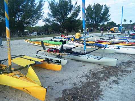 Here's some shots of the beach with the Everglades Challenge boats all lined up for the start. Chuck stopped by the Tiki hut and I took him for a ride on a real boat, "Helen Marie".