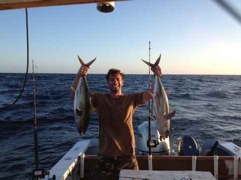 Two Mahi at night, one about 10 lbs one about 5 lbs, 4-5 big shark bite offs.
