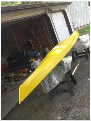 Safety yellow hull. The cottonwoods are conspiring against the paint today.