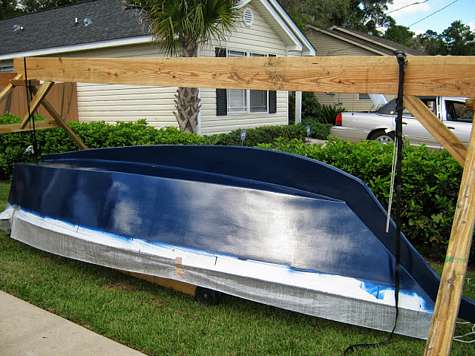 Now that the boat was all painted, I needed to flip it over and start working on the topsides again. Since I shouldn't need to do anything else to the bottom of the hull, I figured it would be good to go ahead and put it on the trailer. The boat probably weighs almost two hundred pounds now with all the coats of epoxy and paint I put on it. I knew I couldn't just manhandle it onto the trailer without messing up the paint job. I could have gone knocking on doors to round up a couple of people to help me turn it over and put it on the trailer. Also, Nic had offered to help me when Debbie posted about it on Facebook. In the end, I guess I am just a little too independent for my own good and saw it as a challenge to figure out how I could flip it myself. Read more on my blog.