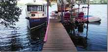 We've had some really low tides and some really high tides this month. Here's a really high tide, the end of the dock is under water. Notice that the plants growing out of the pipes are doing pretty good.