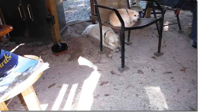 The dogs love to dig a big hole and sleep in it. Here's Cessna stretched out in a hole she dug with Asia above.