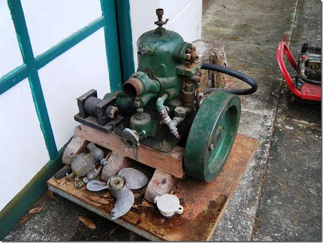 Check out what our buddy Larry Page gave us, a 5 hp 1915 Acadia boat motor. We'll have to build an appropriate boat to put it in and take it out to some of the old timey boat events and kick some butt. Here's a video of one of these motors running.