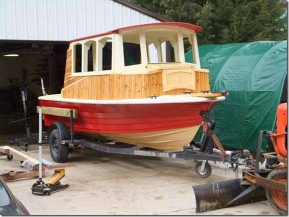 That would be like trying to give this guy advice. Washington Dan is one more step over the top than we are. When it comes to cutting up old boats and doing strange stuff to them he's the grand master. It comes from living in "almost Canada" where the snow never melts and the moose come to drink your beer. This is his latest and it looks almost acceptable, kind of cute in fact. Dan's another one who's not at all hesitant about ripping it out and starting over if he doesn't like the way it's looking.