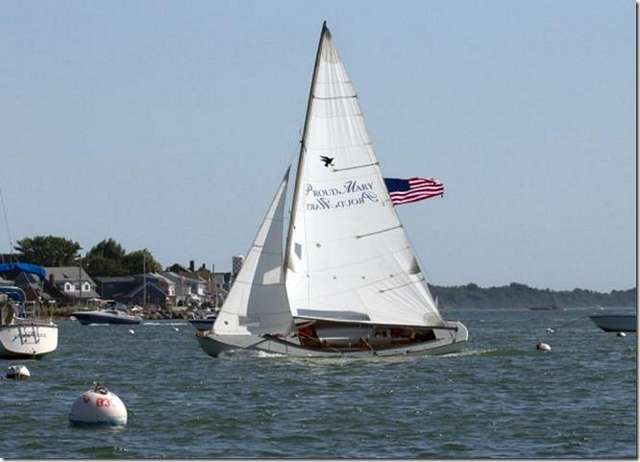 This is another picture of Richard Honan's "Proud Mary 2" sail. This is the 16 foot Melonseed he built.