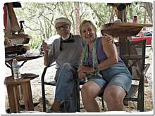 Here's Lenna n the grasp of this old lecher. She thinks that it's cute getting hugged by a 90 year old but I know better. He's just like the rest of us around here, still thinks he's 25 and can knock um back with the best of us.