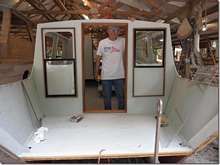 Another simple boat, if you don't count the hydraulic pumps and such; the Mega yacht's still coming along. We should be able to drag it out with about two inches to spare. We can't finish the roof till it's outside. Howard made a major effort and cleaned out the decades of built up stuff down in the cabin.