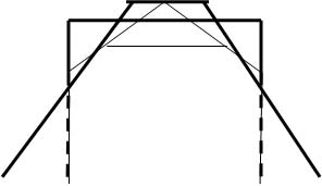 Side view, the new pieces of wood are shown thicker with the existing uprights thin. Hopefully this will extend the support posts to the required height and brace them sufficiently. Note: As the central upright will be extended, another post will need to be bolted to it to hold the extension in place and strengthen it against the load. |