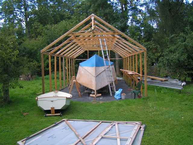 Now what do I fasten it to? Considering the boat shed as it stands, if I lengthen the uprights and put weight on them one of several things may happen:
