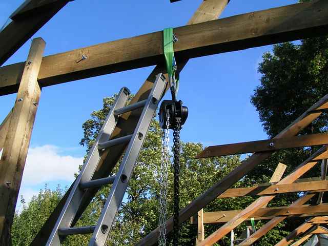 Views of the support beams and a chain hoist. The beams took a day to erect and 30 minutes to take down. |