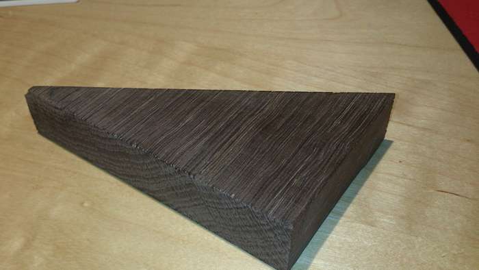 Just to check on the penetration I cut a corner off the first sample. The side grain shown on the right has a penetration of about 1mm. On the left where there was exposed end grain, the penetration was up to about ½ inch.