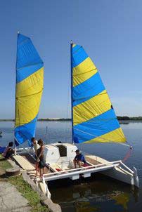 The DUO 425 was my first catamaran with a biplane rig (1985). This boat was and is a big success.
