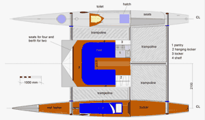 other hanging locker in the starboard hull. The height in the nacelle is from 1,4m at the entrance to