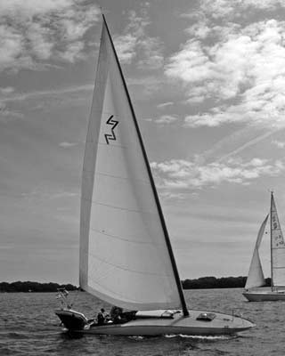 with this rig was the "Tesla", length 13,5m, sail area 84 m2. He used a "vertical" sort of traveler on
