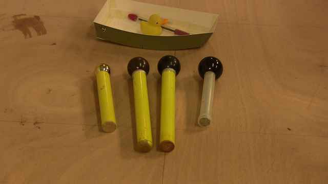 Since I made the fillet video, I was able to pick up two hard and smooth plastic balls, with 3/8" threads. They are bigger than the larger marble ball I used, and would have worked much better on the bow to side panel seams on the Nymph. I will use them on the next hull I build, and I will know if the plastic surface is going to work better than the marble surface. At least I don't have to wax the plastic ones. I found some 1" diameter brass balls in a junk box, and I've added handles to them as well. I'm also going to be looking for larger diameter balls in the future for doing other hulls that need a larger radius for panels with angles in the 120 to 140 degree range. Normally I would just use a 1&1/2" putty knife centered on the seam, and have a flat surface for the glass tape. On some hulls, the panel angles near the bow are pretty flat, so you don't get much fillet material on them, but it does help to cover the jump stitches and have a fairly flat surface to apply the glass tape to. I guess I could use my old bowling ball, as I don't use it anymore, and it has a grip already built in.