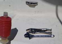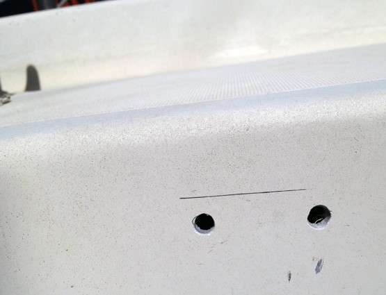 Mount the fuel filter. No problem. Align the drill with the fuel filter intake and open a 10mm hole in the aft bulkhead of the outboard well. No problem. Mount the watertight fitting for the fuel hose. No problem. Cut the fuel hose in two where the long part, which includes the primer bulb, will fit from the aft of the filter intake and the short part will go on the forward outlet fitting and from there to the untake fitting on the outboard.