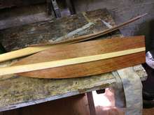 The band to be glued on the face of the blade came from 1" by 1/4" Western Red Cedar, tapered down to 1/8" at each end.