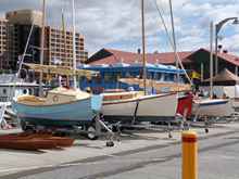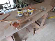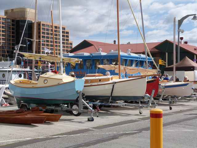 There are four of "my" boats here, SCAMP closest, then a Cabin "Pathfinder", a Houdini with her red hull just visible, and a Navigator all built of sheet plywood and all epoxy glued and coated. All needed the mix to be correct, and all have been beautifully finished with no problems with glue or coating. The boats incidentally were on show at the 2013 Australian Wooden Boat Festival in Hobart, Tasmania, if you get a chance, go!