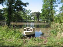 Aa "Bayou Putt-Putt" is a long flat bottom pram bow inboard that was a standard boat type for the Atchafalaya basin during the 1930s and 40s. |