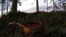 I got a nice view to both sunset and sunrise directions. I took some photos and pick some cowberries for breakfast. Even the evening was warm. I setup the fire inside the tent. Staring a fire is magical.