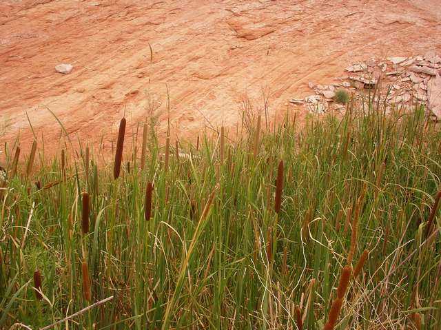 It was kind of amazing to me to see these cattails in the midst of all the rock and sand. It was a very bold contrast with all the rock. And somehow it even made me feel a few degrees cooler. |