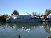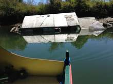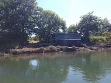 A houseboat. Seems occupied, but I don't know if that's full time or part time. It was either used for storage or was a rather messy place to live.