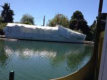 This dream isn't quite broken, but it is seemingly stalled. Basically, it's a raft with a house, of sorts, on it.