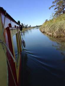 Ebey, Steamboat, and Union Sloughs are basically the delta for the Snohomish River, which runs through the small city of Snohomish and enters Puget Sound in Everett, home of one of the big Boeing plants. At one time these sloughs were quite the place of industry, sawmills for the most part, and you can see their ghosts at every turn in the pilings and abandoned structures. Now, the muddy waters of these sloughs don't get much traffic. In the two days I saw maybe four other boats away from docks at the two or three run-down marinas. Not many people go there. For me it's a fascinating place, and a wonderful retreat from the world. I store my boat in an old dairy barn, which protects it from the weather. It also makes my wife and my Seattle neighbors happy!