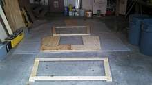 Starting to look like boat. Frames and sides assembled with deck screws. Next step is to glue each bulkhead permanently. Will coat bulkheads with epoxy and 4oz fiberglass to prevent plywood checking. |