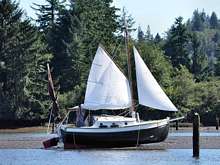 It's not a hard boat to sail overall although it took us some time to learn how to handle the novelty of a mizzen sail. The spanker is actually quite powerful and the bumpkin broke the first time out. I also designed and ordered a topsail, and look forward to trying it out. Overall, it's a big stable boat and it conveys confidence and security. The centerboard is useful in the shallows and the flat bottom makes beaching or being stranded on tidal flats uneventful. It tacks easily, points reasonably well for a gaffer, and is fast enough for cruising. The main drawback is set up time from trailer to water, which can be over two hours and makes it a poor choice for day sailing. It's a two person coastal cruiser, and in that role it does very well.