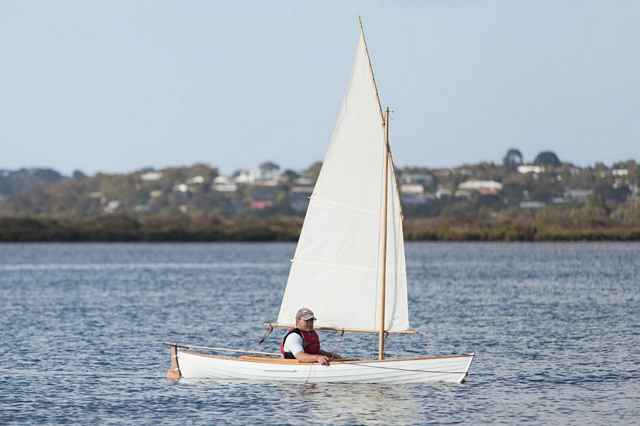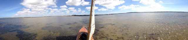 In those first few days there were a few things I learnt about the boat. First, the leeboard as designed is not very functional; and second the foot pedals for rudder steering don't work well. Too much friction. But it does a reasonable job going to windward without the leeboard and I rigged up a long pole steering system quickly to ensure I could continue to enjoy the boat over the summer.