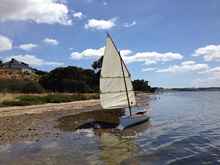 The boat is called "Kotahi", it is a Moari word meaning to "be one, single, alone". Appropriate I thought for a sailing canoe. Unsure of how the canoe would perform, or even if I would be able to keep it upright, it was alone that I launched the boat and started my long awaited voyage on a flood tide to assist me upstream. I ghosted up river on the light and variable winds of the early morning, startling a few fishermen as I crept up on them.