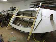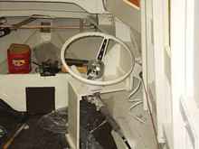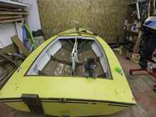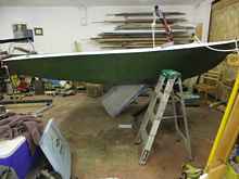 And that was after scraping off about an inch of chicken poop from every possible surface on both boat and trailer. I epoxy'd the entire bilge just to overcome the stench and mold. But, this little girl is surprisingly sound. And, pretty interesting from a sailboat point of view. The centerboard is made out of ¾" aluminum plate, and has even been machined to a reasonable facsimile of a proper foil.