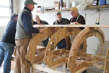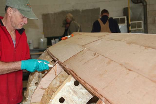 The kit arrives as a stack of CNC cut marine ply including planks (with scarfed edges) molds, ribs, and inner stems. The molds set up in a clever system of interlocking struts and, with the keelson, ribs, and stems in place, planking begins. A word to the wise; changes have been made to the kit since the plans were drawn and if you like to prefab pieces based on the plans, you will find surprises. There have also been some instances where planks did not fit well to a particular hull. I have seen three boats that appear to me to be slightly unfair at station 2, planks 1-3. Like all things in boat building, you have to build to your boat.