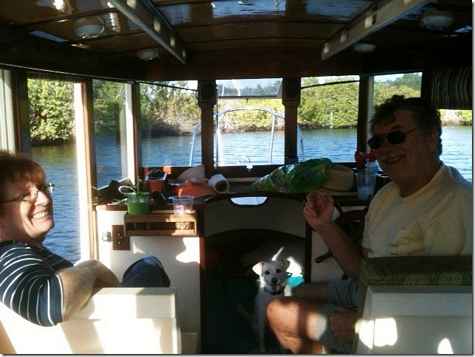 Me and Steve and Helen and Kayak Kathy and Nicole and our seven dogs just came in from a trip down the river. What's wrong with these pictures? Could it be the shorts and tee shirts.