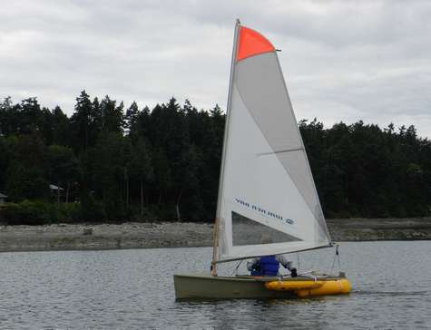 Here are todays first sailing photos. I am sailing with the full "training wheel" set up. I'm going to remove them tomorrow - too boring, although very stable and safe. Almost made 5 knots though (4.8).
