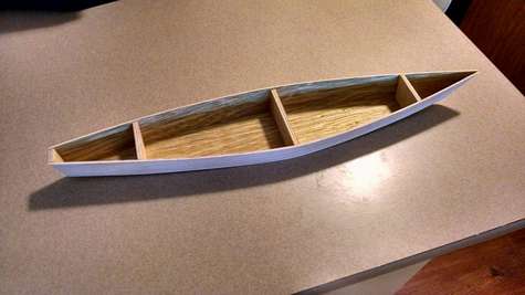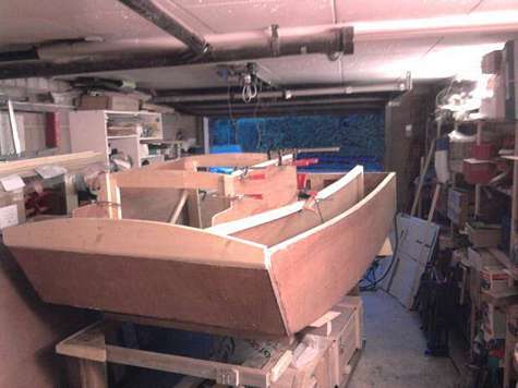 1/10-ish scale Bolger Zephyr coming along nicely. Perhaps I should have ditched the midships frame and put in two equally space instead. It looks a little hard right there on the starboard side.
