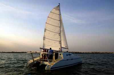 The pictures give a good impression of how big an catamaran with a length of only 25 feet (7.50 m) is. As a designer I am very pleased with the result.