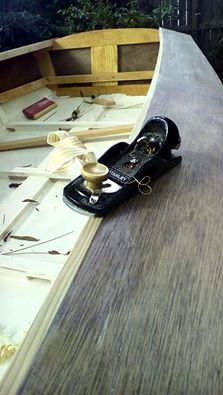 A low-angle block plane is a great tool for building plywood boats. I have several that I keep sharp. Here is another use for one: paring down the inwale cap flush with the deck. I prefer to skew the plane so that the blade is held only over the area that I want to cut and avoid knicking the plywood deck.