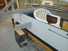 Once the glue on the starboard side 1x4 piece has set, the hole for the 2x6 motor mount board can be cut out. |