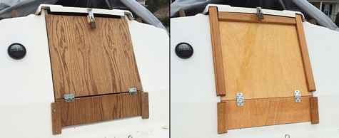 Fortunately, I had recently built a new hatch to replace the rather shoddy one constructed by my boat’s previous owner. Hence I had the plywood scraps from the old hatch sitting unused in the corner of the garage.