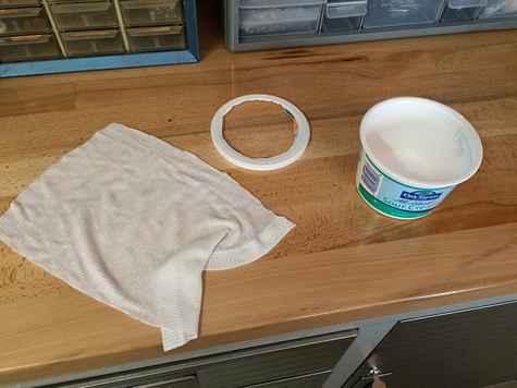 4. Lay a piece of the undershirt over the top of the container and put the lid over it;