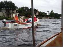 Which leads me into this one, the Crystal River Rats took their new big Civil War Scow on a long trip (about 50 miles) up to Cedar Key last month and say that everything worked out to perfection. One of the guys on the trip was Whalen, never can tell when you'll need a submariner. They were getting speeds out of this thing that were truly impressive. On a beam reach in 15 or so they were occasionally hitting 8 kts. I suppose if you give a big flat bottom barge enough sail and enough wind it will haul ass.