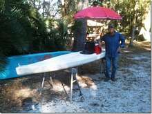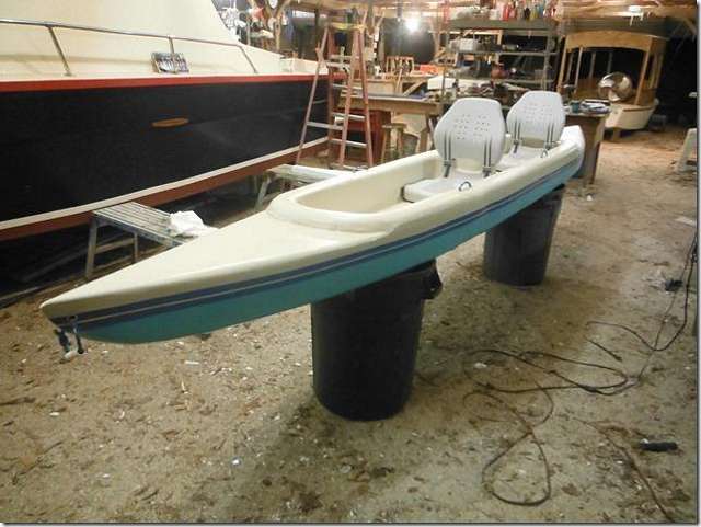 I'll finish up the kayaks with Stan's little boat. It worked out pretty well, not as fast as the longer ones but good for 13 feet and he can flip it up in top of his car with one hand.