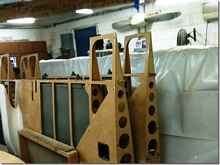It's not unusual for you guys to stop by to check these boats out and talk about foam building, so when Richard from Apollo Beach came down to see about making foam Melonseeds I didn't think anything of it. Well he didn't need to talk about building with foam, he wanted to see the shape of the hulls to get an idea of how many sections he'd need to make. He's going to make 10 of our boats for a sea scout group of some sort and thinks he can make the hulls from foam in about a day, no kidding. Richard has been making stuff with foam for forty years and is probably the master of the skill. Howard and I were overwhelmed with all his knowledge, which like all experts we had to drag out of him. He told us about making airplanes out of foam so we were hooked and drove up to his shop/hanger today. I didn't get a picture of them but he had a glider with 15 meter