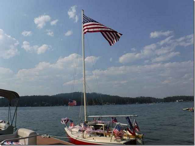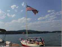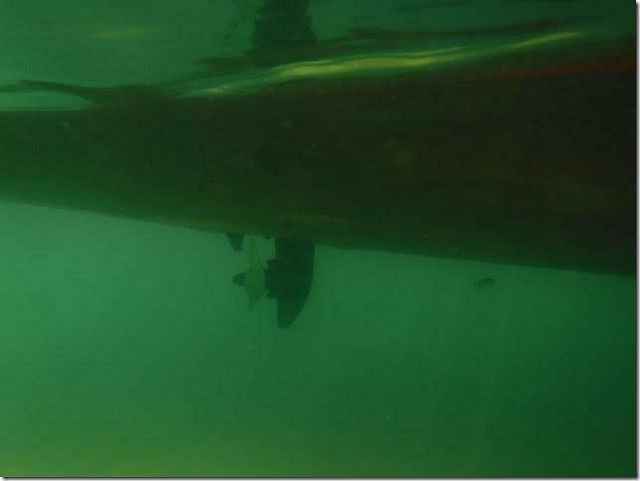 I bet you thought I forgot Washington Dan when I mentioned strange boats. Dan is the master of custom boats. This is a little sailboat he's had for a long time and got tired of the outboard hanging on the back so he just cut a hole in the bottom to stick it through. Like me he knows that he can always put a patch over it if it doesn't work but he says that it does indeed work just fine so now he has a powered flag pole. Enjoy it while you can Dan, I think I see ice forming in the distance.