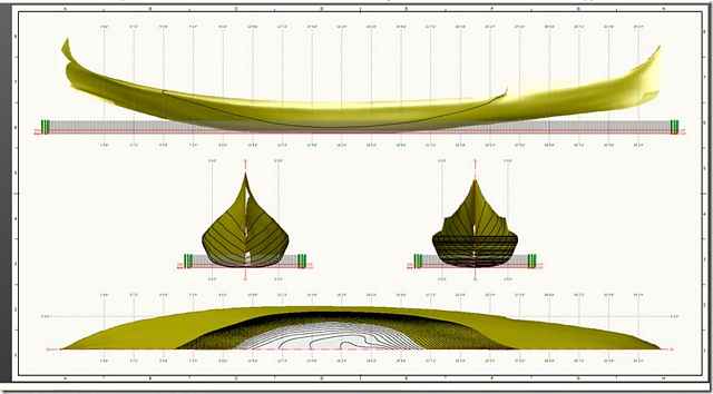 I'll end with this. Jim is looking for his next build and it has to be something to really challenge him to the limit. We all start out making little plywood box boats and get progressively more complicated and challenging to keep our interest. How's this for complicated? It's 36 feet long, 4 feet wide and has a hull that's not the same shape on each side, asymmetrical; it's a Gondola. Even the oarlock thing that sticks up to push the oar against