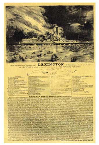 "Awful conflagration of the steam boat Lexington in Long Island Sound on Monday eveg., Jany. 13th 1840, by which melancholy occurence; over 100 persons perished", 1840. |